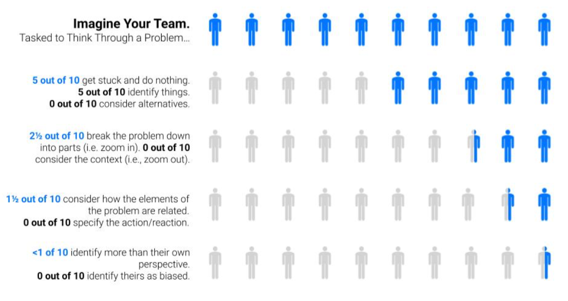 Based on the dataset in the study, about 58 of those moves will be naming/identifying distinctions, about 21 will be breaking things into parts/wholes, about 18 will be connecting things, and only about 2 will be explicit perspective-taking.