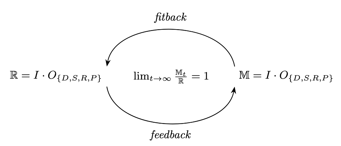 reality (R) provides feedback to our mental models. In response, our Mental Models (M) update themselves - what the authors call fitback - to better align with reality.