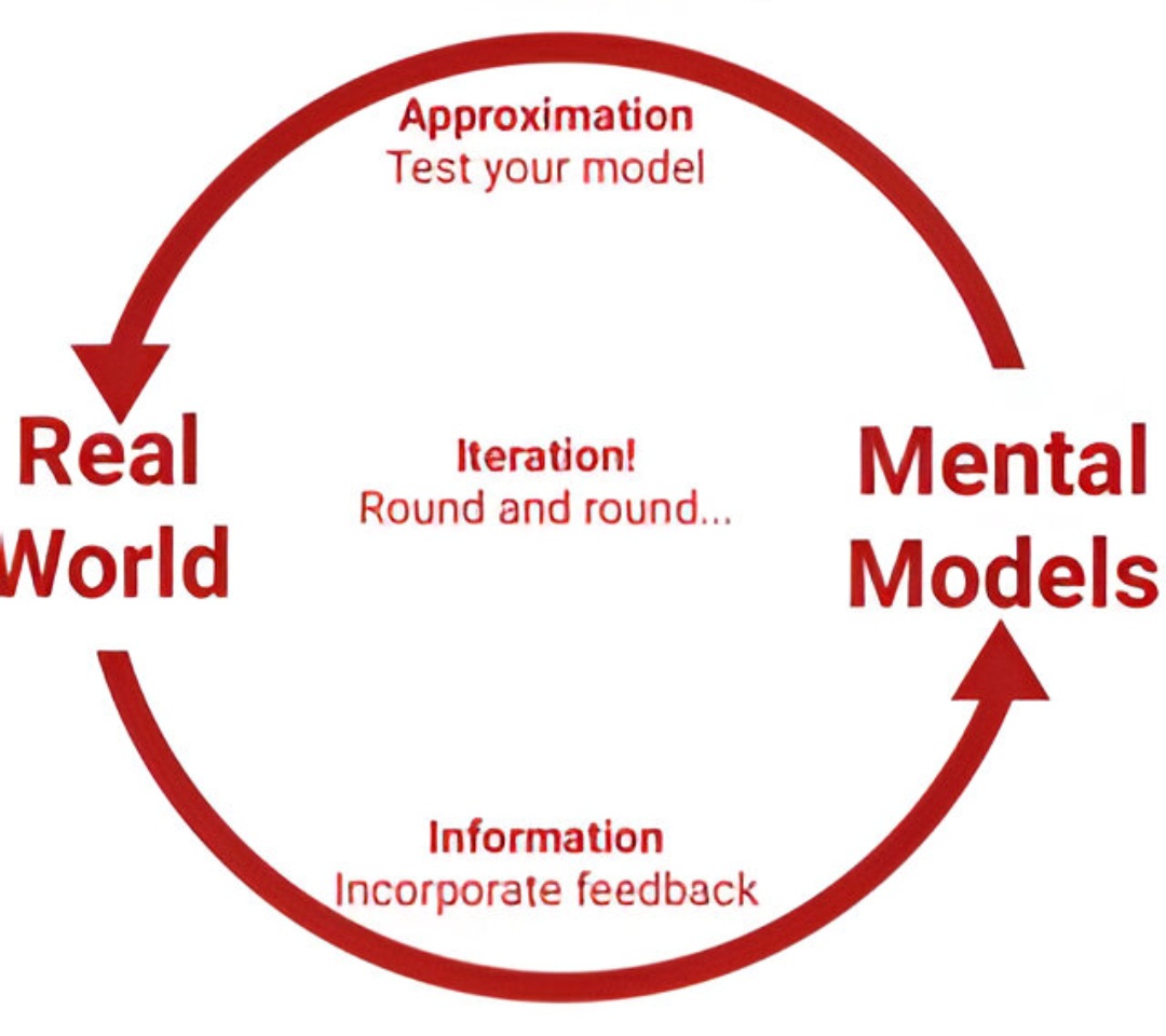 We update our mental models when we find better explanations or new evidence. Acting on these models tests them against reality, whose feedback provides the criticism needed to improve our explanations: approximation → test → incorporate feedback → iteration.