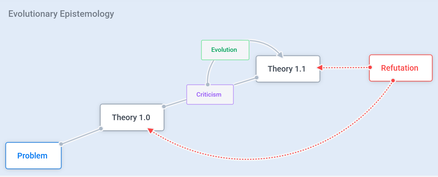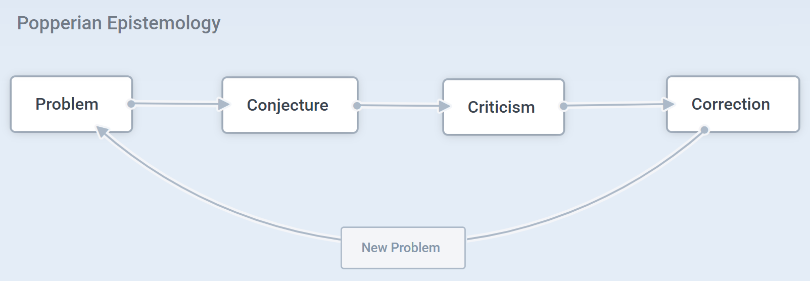 Even after we’ve refined a theory, or learned something new, further problems arise. Each problem leads to new conjectures and new criticism. Knowledge therefore advances through this cycle of conjecture, criticism, and improvement, not through justification or attempted verification.